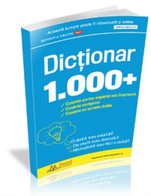 Comandati chiar acum lucrarea “Dictionar 1000+ cuvinte scrise separat/impreuna, cuvinte compuse, cuvinte cu sunete duble” la pretul de 48.84 lei (TVA inclus)